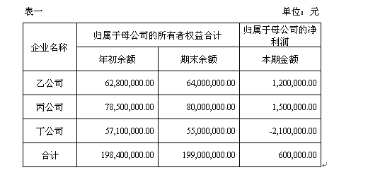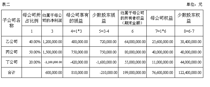 1、表二计算时按照期末母公司所占股权比例计算相关数据。