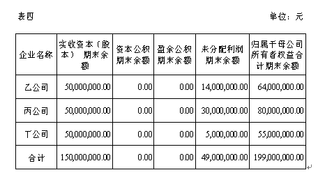 从上表可以看出,乙丙丁三公司归属于母公司的所有者权益本期变化只有利润变化的影响,没有其他因素。