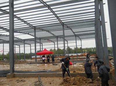 国家胶体材料研究中心中试基地是济南市政府同山东大学战略合作的重点项目。基地建成后将为济南化工产业园区培育产业“龙头”,吸引高精尖企业聚集,成为园区调转方式、调结构、构建现代产业体系的强大科技引擎。该工程一期建筑面积3688m2,工程造价440万元,合同工期45天,计划完工日期为9月30日。工程时间紧,任务重、政治性强,项目部从8月16日进场后,精心组织,科学管理,克服连续阴雨天施工等不利因素,加班加点进行工程施工。目前工程主体钢结构框架已经施工完毕,其他水电暖、消防、土建施工正在紧张进行。项目部全体干部职工将坚定信心,科学调度,合理安排,精心组织施工,在确保质量、安全的情况下按期完成施工任务。