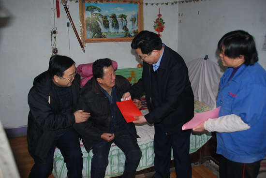 贾振余一行代表省局党组织把慰问信和慰问金交到每一位困难职工手里。走访中,贾振余关切地询问了困难职工家庭、身体等情况。了解到刘清华家里的特殊情况时,贾振余关心的说:“困难是暂时的,要有信心克服”。刘清华紧紧握住贾振余的手不放,激动地留下了眼泪;当得知冯玉会多年患半身不遂时,贾振余深表同情,叮嘱他要细心注意身体变化,稍有不适就要及时到医院就诊……