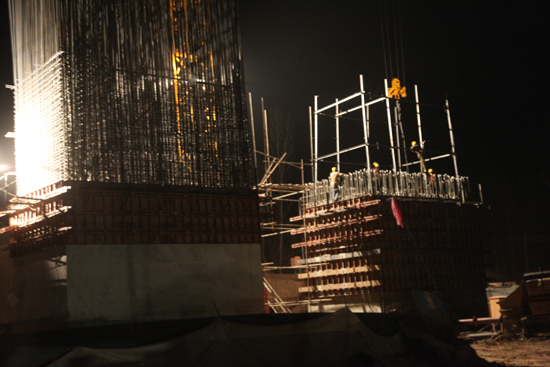 夜间桥墩施工人员