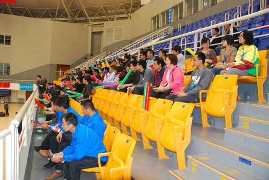 大家拿好锣、鼓、吹哨等啦啦队装备,从集团公司乘中巴出发。行程中,大家热议2012年山东黄河职工篮球赛,谈论集团公司篮球队的每个队员,特别是今天的冠亚军争夺赛——工程集团队VS济南局队,大家激烈争论着……