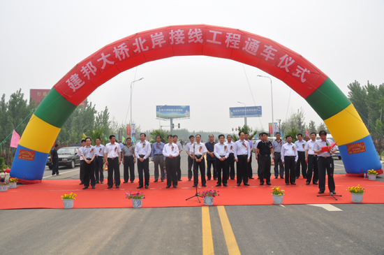 5月5日上午11时18分,由山东黄河工程集团有限公司参与建设的建邦黄河公路大桥北岸接线工程正式通车。济南市政协副主席张辉,天桥区区委书记毕筱奇,区委副书记、区长李洪海,济南市河务局副局长许建中、山东黄河工程集团有限公司董事长郭学鑫等领导同志参加了通车仪式。济南化工产业园区管委会主任赵新生同志主持通车仪式。