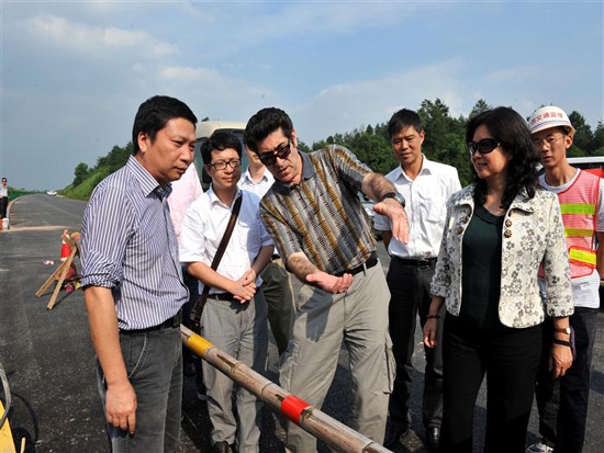 5月30日,美国路面技术专家组在江西省交通运输厅领导的陪同下对由山东黄河工程集团承建的江西奉铜高速BP2标进行考察。