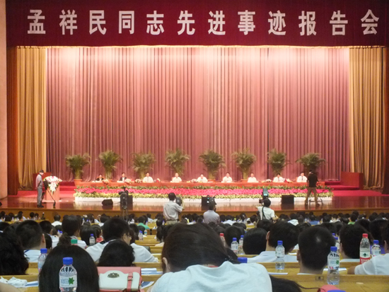 该同志是在深入贯彻落实科学发展观,建设资源节约和环境友好型社会,推进生态文明建设大背景下,在全国推出和集中宣传的重大典型,生前是淄博市环保局淄川分局监察大队监察一科科长。他15年如一日,忠于职守、善于学习、勇于担当、廉洁奉公,尤其在身患绝症的情况下,仍以超常毅力奋斗在环保工作第一线,赢得了人民群众和社会各界的广泛赞誉。对于孟祥民同志的先进事迹,中央和省委都高度重视,中共中央政治局常委、国务院副总理李克强,中共中央政治局委员、书记处书记、中宣部部长刘云山作出重要批示,省委追授孟祥民同志“山东省优秀共产党员”荣誉称号,环保部和山东省在济南联合召开了孟祥民同志先进事迹表彰大会。报告会前,省委书记姜异康亲切会见了报告团全体成员,对孟祥民同志先进事迹给予充分肯定和高度评价。这次报告会由山东广播电视台公共频道录播,大众网、齐鲁网视频图文直播。