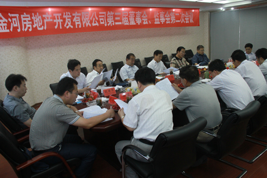 会议由金河公司董事长郭学鑫主持。会上,金河公司负责人做了工作报告,相关人员做了财务报告及新开发项目考察情况汇报。与会董事、监事分别对两个报告进行了讨论审议,并表决通过。另外,还表决通过了金河公司在天津、莱阳市场进行新项目开发的汇报;表决通过了提名金河公司副董事长的提案。同时,与会人员对金河公司下一步工作中的房地产开发、房建施工、项目代建及搭建融资平台等重点工作进行了深入探讨并提出了良好建议。