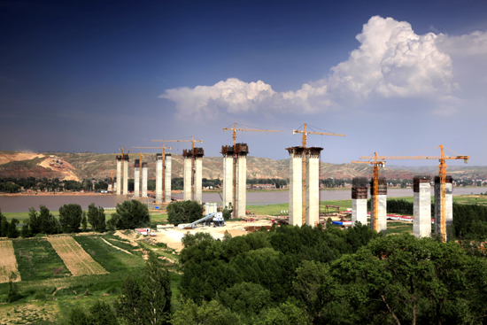 会议首先观摩了山西神河高速LJ9标、内蒙古准兴高速A1标的施工现场。