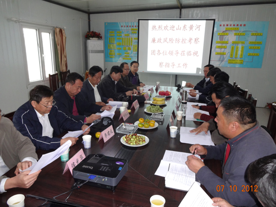 10月7日,山东河务局监察处刘灿玉处长率廉政风险防控考察团对内蒙古准兴高速A0标进行了检查,山东黄河工程集团党委副书记史庆德陪同。
