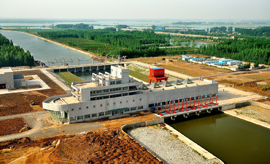 来到南四湖,放眼望去,蓝蓝的天空下,二级坝泵站枢纽工程犹如一艘整装待发的战舰,为美丽的微山湖增添了一道别具一格的景观。