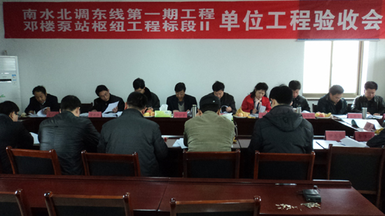 3月12日,由山东省南水北调南四湖至东平湖段工程建设管理局主持,南水北调南四湖至东平湖段工程质量监督项目站、山东省水利勘测设计院、山东省科源工程建设监理中心、山东黄河工程集团有限公司、山东省水工机械厂等单位组成的单位工程验收工作组,对邓楼泵站和厂区回填及道路两个单位工程进行了验收。