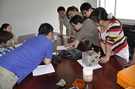 据悉,在大型项目施工过程中,经常遇到结构混凝土表观及内部缺陷的检测情况。此项检测项目专业性强,要求检测人员要熟练掌握仪器设备的操作要领,并且其数据处理也非常复杂。培训过程中,试验人员认真听讲,虚心好学,积极动手操作。经过一天时间的紧张操练,试验人员了解了非金属超声波检测仪、裂缝测量装置、钢筋位置及保护层厚度测定仪等仪器的工作原理及注意事项,掌握了其操作要领,取得了良好的实训效果。