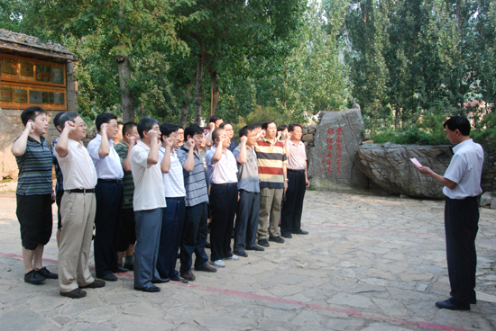8月16日,大家来到山东省临沂市沂南县马牧池常山庄村参观了“中国红嫂革命纪念馆”,这是迄今为止唯—全面、系统的介绍“红嫂”的专题纪念馆,全馆共分8个部分,12个展馆24个展室。讲解员栩栩如生的讲解,让大家深刻了解了以明德英为代表的“红嫂”们在抗战期间不顾个人安危,以不同方式掩护革命军人和抗日志士,并英勇参加救护八路军伤病员工作的感人事迹。大家重新洗礼了战争年代中国共产党与群众的雨水之情,被这种崇高的精神所震撼。全体党员在中国红嫂纪念馆前进行了入党誓词,重温了入党誓言。