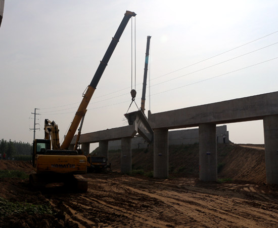 8月8日上午,随着南林高速K8+898千口互通立交主线跨S209桥边跨的第一片长35米的预制箱梁的成功架设,标志着由山东黄河工程集团第一工程处承建的南林高速NLTJ-2合同段进入上部结构施工新阶段。
