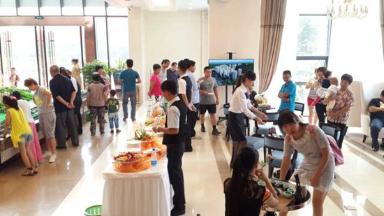 上午8点,活动还没开始,客户就已经陆续进场签到,营销中心热闹非凡、人声鼎沸。万众期待之下,上午10点17分活动正式开始,活动现场除细腻温婉的古筝演奏之外,还有经典的茶艺表演,还有月饼DIY制作等互动活动,新鲜的水果、饮品等美食也给现场的客户带来了一场舌尖之旅。