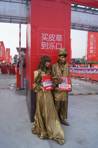 上午10点,开业典礼正式开始,吸引了大量市民前来观看,现场人头攒动。活动有大型歌舞表演、美女不倒翁、变形金刚、彩绘艺术等精彩节目,热闹非凡。还设置了扫微信中大奖的环节,增加了趣味,不时听到意外惊喜。11:08分,在来宾和广大业户的见证下,主持人宣布泺口服装市场高中档批发区及泺口皮革城正式开业。
