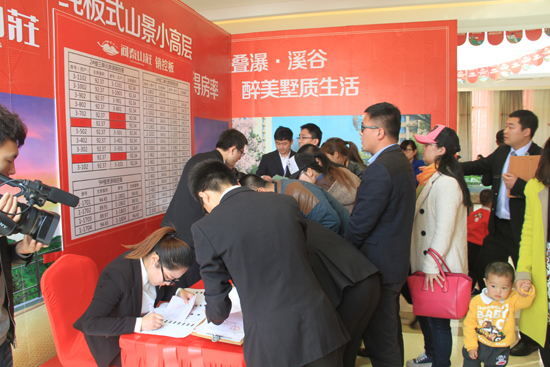 当天上午,在装扮一新的河泰山庄营销中心,挤满了数百名前来选房的客户,歌舞表演,舞龙舞狮,好不热闹。10时许,礼炮轰鸣、彩带飞舞,河泰山庄正式开盘。在项目部副经理高原致辞后,选房正式开始。客户按号码顺序进入选房区,按流程进行选房、签约和交款,交款后还有砸金蛋活动。直至下午2时左右,开盘活动圆满落幕。