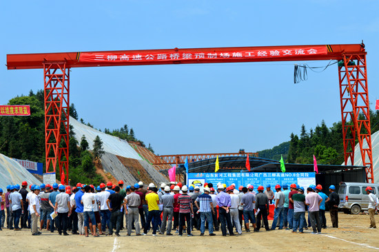 近日,广西三柳高速业主金龙公司组织业主代表、工程部、质安部及11个标段施工单位、监理单位到三柳高速8标项目部2#、3#梁场召开了桥梁预制梁、板经验交流会。