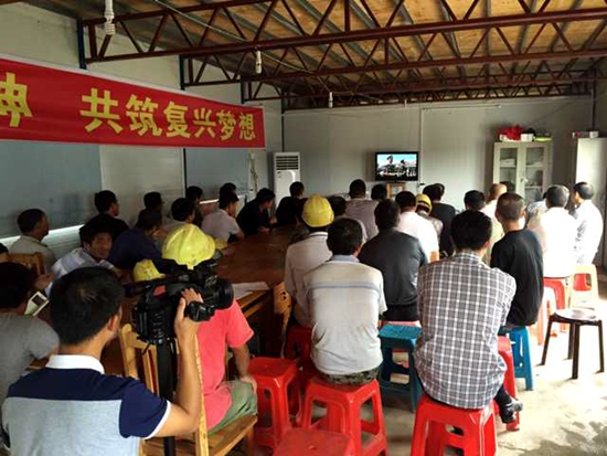 9月3日,在10点之前,山东黄河工程集团广西三柳高速八标项目部职工早早聚到了会议室,等待观看纪念抗战胜利70 周年阅兵盛典。
