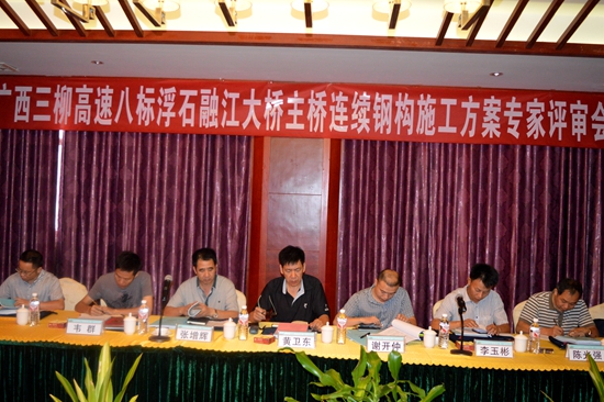 9月2日上午,广西三柳高速八标项目部浮石融江大桥实施方案专家评审会在广西融水顺利召开,参加会议的专家有广西金龙高速公路有限公司总工黄卫东、工程部部长张增辉、质安部部长李玉彬、肖克强博士;广西大学谢开仲教授、陈光强教授;广西壮族自治区交通规划勘察设计院韦群组长;江苏安达工程咨询监理有限公司施桂喜副总监;山东黄河工程集团有限公司相关人员出席了会议。