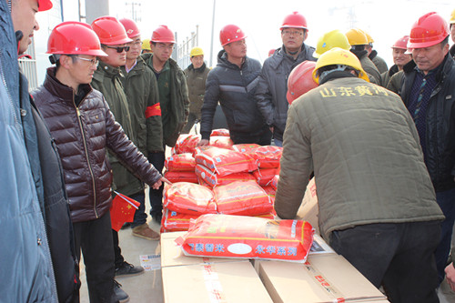 演出小分队的精彩演出受到了广大职工的欢迎,演出结束后,颍上县总工会向广大一线工人发放了大米、食用油等慰问品,颍上复线船闸工程项目部负责人代表颍上复线船闸建设者向颍上县总工会演出小分队的到来致以感谢,并赠“寒冬送温暖,真情暖人心”锦旗。