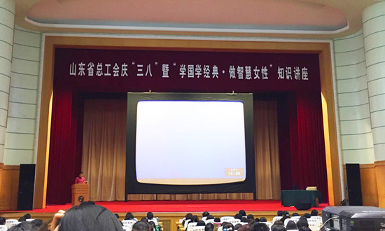 近日,山东黄河工程集团有限公司工会组织人员参加了山东省总工会庆“三八”暨“学国学经典·做智慧女性”知识讲座,浙江省总工会干部学校讲师虞少敏为全市近五百名女职工代表带来了精彩的《<道德经>里的幸福智慧》,为大家讲解了神秘又另类的老子及老子的思想精髓--《道德经》,让大家接收了一次心灵洗礼,在工作和生活中学会“无用之用、无欲之欲、无为之为、无心之心”,在日益浮躁的社会生活中运用《道德经》中的智慧,寻得一份宁静,一份闲适。