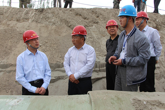 来到管道安装现场后,检查组首先慰问了施工一线的工人,随后深入管道基坑中检查了管道安装质量,对管道安装质量给与了肯定,要求在保证工程质量的前提下,还要继续加快管道安装进度。随后来到总水厂,在听取了总水厂情况汇报后指出,总水厂是工程总工期能否顺利实现的控制性工程,要求业主要联合监理和施工方合理优化施工进度计划,倒排工期,确保2016年年底前完成总投资的90%以上。最后,检查组强调要加强施工现场的安保工作,做好处置突发事件的应急方案,确保施工人员的生命和财产安全。