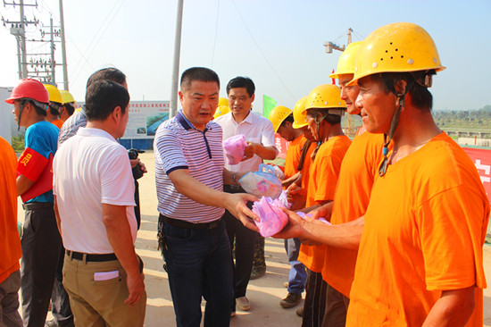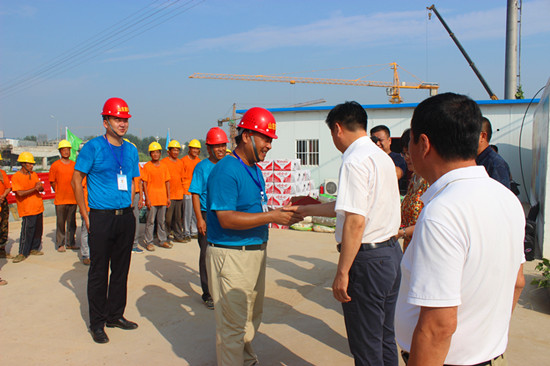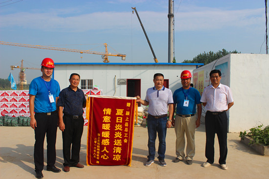 该项目部向慰问组和广大工人做出承诺,酷暑之际,项目部会科学组织施工,合理安排工作时间,以保障工程质量和工人身体健康。