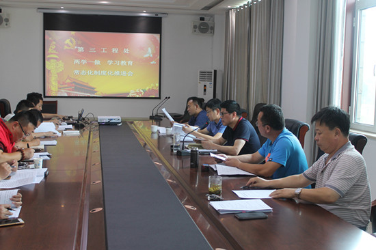 6月11日下午,第三工程处党支部召开了“两学一做”教育常态化、制度化推进会,在济党员和入党积极分子20余人参加会议。