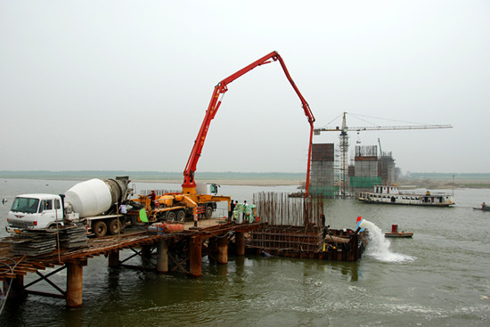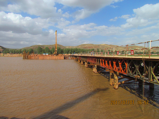 还是在这个工地,由于受内蒙古黄河凌汛和岩石河床地质条件的影响,跨河临时交通基本采用浮桥的形式。王孝军反复调查、收集黄河上游桥梁施工和黄河凌汛资料,并结合项目的特点和黄河凌汛规律,采用“板凳”式结构原理,自行设计并成功打设了第一座钢栈桥,解决了裸岩河床钢栈桥的稳定性问题,提高了栈桥的通行能力,为自重110吨的大型设备顺利通行及冬季施工提供了有力保障,在施工中发挥了至关重要的作用,同时实现了快速拆除和搭设。该桥现已安全渡过了两个黄河凌汛期。由王孝军主持完成的《裸岩河床钢栈桥设计与施工技术》获得了山东河务局应用技术类创新成果一等奖。