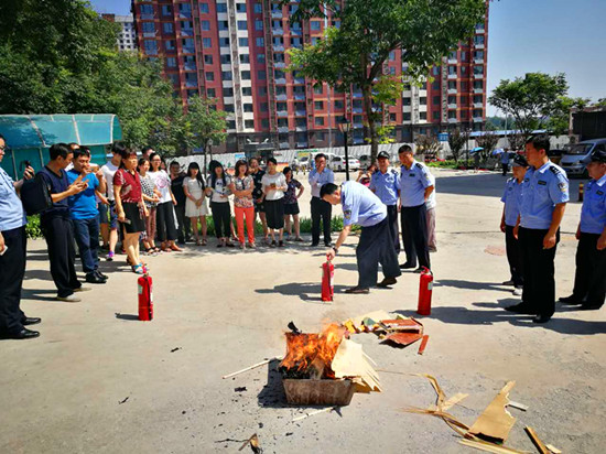 为了提高安全防火意识,针对当下夏季高温、火灾易发多发特点.7月11日,第一工程处、济南盛园物业管理有限公司与金河社区、金河警区举行了联合消防演习,由警区的民警同志讲授了干粉式灭火器的使用方法,演练过程中,员工和民警同志虽然顶着炎炎烈日,但个个精神饱满,积极响应,演练动作连贯、准确,各种情况的处置措施得当,体现了组织协调的细致周密。