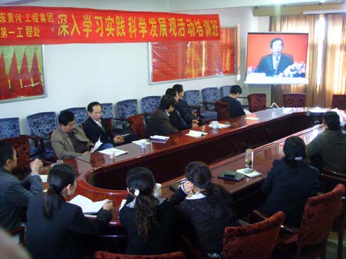 第一工程处主任赵吉生传达了集团公司董事长、党委书记郭学鑫在集团公司学习班上的重要讲话精神,并对第一工程处深入学习实践科学发展观活动提出了三点要求:一是结合本单位实际,每个项目部各自制定培训计划,采取个人自学,集中培训和专题辅导等形式,组织党员干部认真学习党的十七大精神及中央领导关于科学发展观的重要论述。二是深入调研,处领导班子成员要结合自己分管的工作,拟定调研题目,认真撰写调研报告,处一把手和党总支书记必须上交一篇有份量的调研报告。三是处中层和全体党员须将学习所得记在笔记上,自觉运用科学发展观武装头脑,关心和支持单位的改革发展事业。
