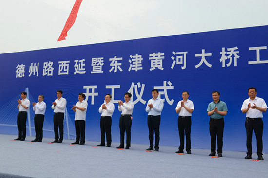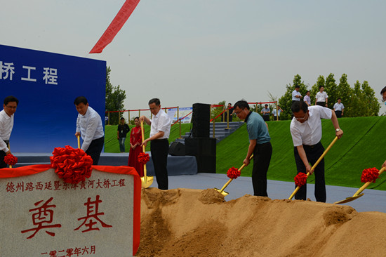 6月29日10点38分,在黄河入海之地利津县黄河小李险工段,隆重举行了德州路西延暨东津黄河大桥工程开工奠基仪式。