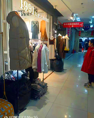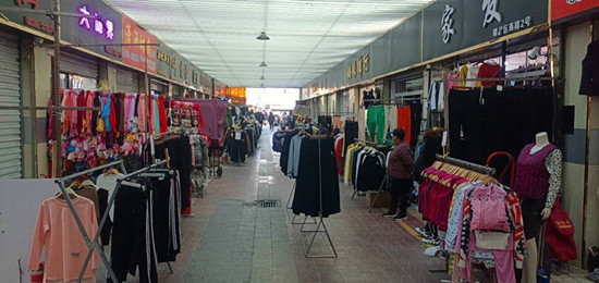 服装市场分为楼内、楼外两部分。楼内与皮革城连接一体,分为一、二两层,共159个摊位;楼外分精品南区、精品街、精品西区三块区域,共122个摊位。市场摊位全部以承租制租给业主,年限为3-15年不等,