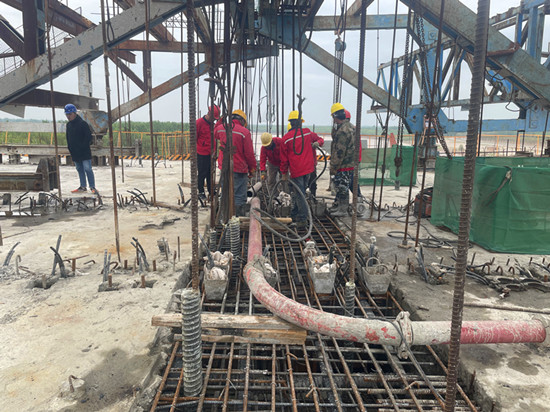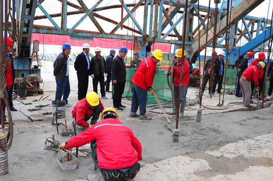 山东黄河河务局党组高度重视大桥建设工作,多次召开专题会议研究,主要领导多次现场检查指导工作。工程集团抽调精干力量,成立了项目公司及项目部领导班子,强力推进大桥建设。自开工建设以来,参建各方团结协作,群策群力,制定了周密方案和强力措施,攻克了流沙、岩石裂隙发育等桩基施工复杂地质及主河槽深水基坑开挖等施工难题,并采取积极的度汛措施,最大程度减少黄河洪峰对工期影响。在施工中,严格执行“政府监督、法人管理、社会监理、企业自检”的质量保证体系,坚持巡视检查和旁站监理制度,严格工序报验制度,推行首件认可制,明确质量标准,杜绝使用不合格材料;严格落实见证取样制度,加强进场材料自检及监理抽检,加强工序质量及隐蔽性工程检验,确保工程实体合格率;逐级签订安全生产目标责任书,夯实安全生产和质量责任;成立专职小组,积极协调地方政府和防疫部门,及时编报疫情期间复工方案,按照控制性工程先行复工的原则,有步骤的推进复工复产。
