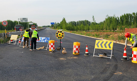 该项目位于日照市莒县,项目全长31.249 公里,总投资10.4亿元。作为日照市重点工程,项目自进场以来严格落实业主要求,狠抓质量,严格管理,注重安全,力促施工进度快速进展。当前,该项目主路全线贯通在即,全体施工人员施工热情高涨,项目部对剩余工程进行倒排工期,明确施工进度、质量、安全和环保目标,各作业面施工全部展开,掀起了大干热潮。同时实行安全环保领导带班制度,加大对全线安全、环保的巡查力度,并安排专职交通协管人员疏导重要交通路口的交通,确保行车安全。参建人员坚守岗位,兢兢业业,奋勇争先,用辛勤的汗水诠释最美黄河工程劳动者。