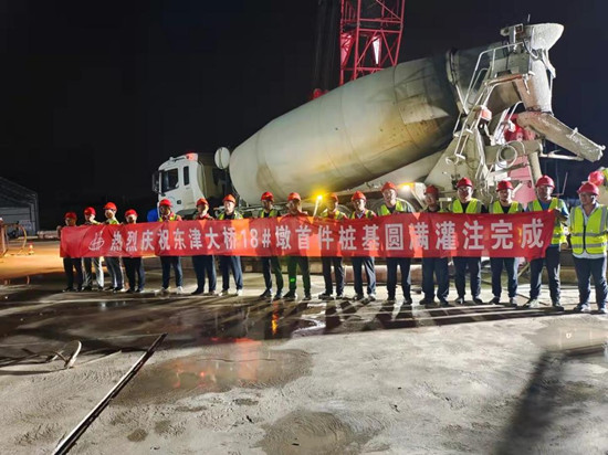 近日,伴随着最后一车混凝土的灌注,东津黄河大桥18#主墩群桩首件工程灌注成功,从首桩开钻至完成灌注历经177小时。