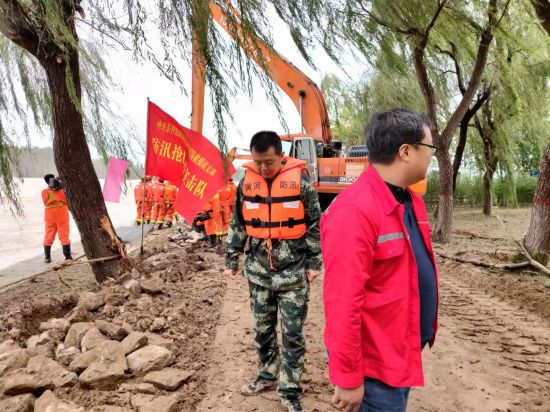 东津大桥项目部作为工程集团的派驻单位,提高政治站位,高度重视当前洪水防御工作,主动与地方政府及黄河管理段进行沟通,多次安排机械设备配合地方防汛工作。10月7日,路庄管理段宁海控导需要增援,项目部立即安排机械设备及人员火速赶往现场,与现场防汛指挥人员进行沟通后,随即投入到工作中。项目部为配合地方防汛工作,自发组织为胜坨镇胜利社区段沿线四个防汛驻点送去了矿泉水、方便面、火腿肠等物资,并与指挥人员进行交流,项目部也随时准备加入黄河防汛队伍,确保黄河安澜。