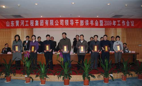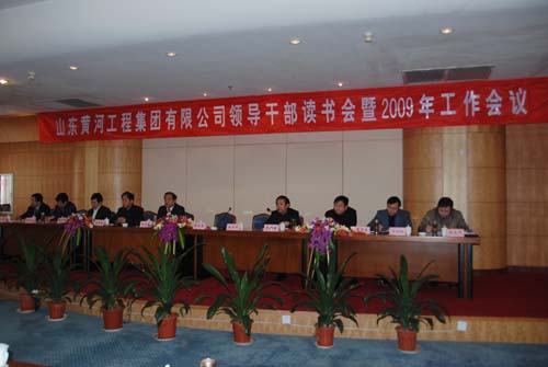 2009年2月5日-2月8日,山东黄河工程集团有限公司领导干部读书会暨2009年工会会议在淄博召开,集团公司领导、各工程处领导班子成员、机关中层以上干部、高级职称以上人员、一级建造师、造价师等共计60余人参加了会议。在读书会上,收看了录象片《企业转型期管理》,交流了学习实践科学发展观论文,邀请上海攀成德管理顾问公司李福和经理讲授了集团本部管理模式。在工作会议上,传达了省局工作会议精神,各工程处汇报了2008年工作情况和2009年工作打算。郭学鑫董事长代表集团公司领导班子作了题为《强化管理措施 实践科学发展观 为促进集团公司又好又快发展而努力奋斗》的工作报告,全面、客观地总结了2008年的各项工作,分析了当前面临的形势,对2009年的工作进行了具体部署。会上还对先进单位、部门、优秀项目经理部、项目经理进行了表彰,签订了2009年目标任务书,省局杜宪奎副局长莅临会议指导并讲话,对集团公司的工作给予了充分肯定和鼓励,提出了殷切希望与要求。