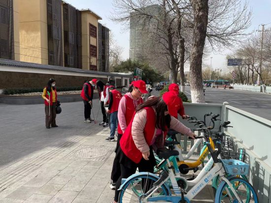 此次活动分三个小组进行,第一小组在景区内向过往游客发放“文明旅游倡议书”,热情耐心地向他们讲解文明旅游的重要性。第二、三小组沿景区外道路捡垃圾、整理共享单车,提升了市容市貌。