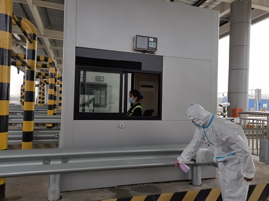大桥公司召开专题会议,将疫情防控工作精神传达部署给每位员工,普及相关知识,要求全员做好预防措施,并配齐了医用口罩、消毒液、防护服、防护面罩等防护用品。重点对收费员、路政员、外勤人员的安全防护工作加强管控,确保在岗期间正确佩戴防护用品。根据疫情发展态势,每日对当班及倒班上岗人员进行预防性消毒和体温检测。同时对收费岗亭等重点区域进行消毒,做到勤打扫、勤洗手、勤消毒、勤通风,确保站区干净整洁,有效预防疫情传播。