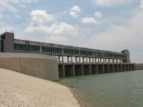 在抓好施工质量的同时,项目部积极探索新技术、新材料的应用,进行各种优化设计,研究应用了大体积混凝土冬季施工防裂缝技术,有效的防止了底板、墩墙混凝土裂缝;基坑排水采用“直线补给边界基坑深井降水镜像反射方法”代替搅拌桩截渗墙方案,提前了项目工期,节省了大量开支;岸墙后回填材料采用轻质粉煤灰填筑,有效地降低了墙后土压力,保证了岸墙稳定,为墙后填筑工程探索了一种新的工艺。