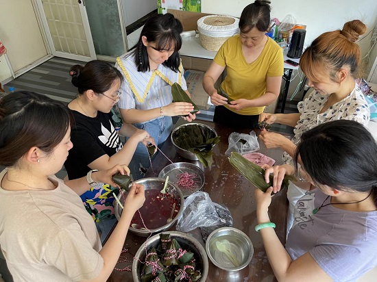包粽子看似简单普通,但要包的快、包好看、不露馅,对大家来说困难可不小,通过交流心得和展示手法,形状各异的粽子摆满了桌面。活动加深了同事间的交流,明确了目标,增强了情感认同。大家高兴地说,自己动手尝试,学会了一项新技能,多了一门新手艺,这是一个有意义的端午节,过的特别开心。