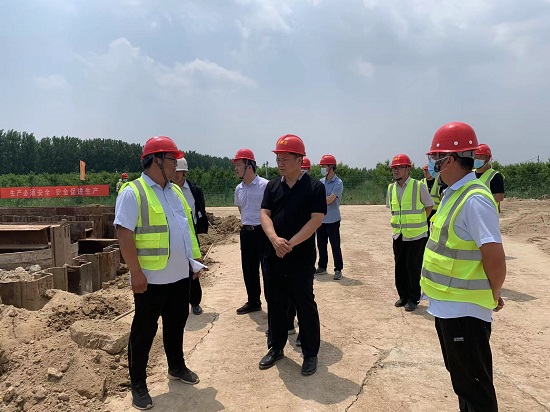 李斌一行深入施工一线,仔细询问了疫情防控、安全生产、质量管理及施工进度等情况,对项目前期工程建设方面取得的成绩表示肯定,对加强项目建设管理工作提出要求。一要提高政治站位,从大局出发,主动出击,发挥项目的主观能动性,解决施工中的难题,为项目施工争取有利的外部条件;二要抓好疫情防控和安全生产工作,按照疫情防控常态化和“安全生产月”要求,加强教育培训引导,落实好各项管控、防控措施,全力抓好防范工作;三要加强项目管控,做好项目成本测算和成本控制,严格落实各项规章制度,合理整合资源,优化施工工艺,通过全过程的管控确保项目施工效益。