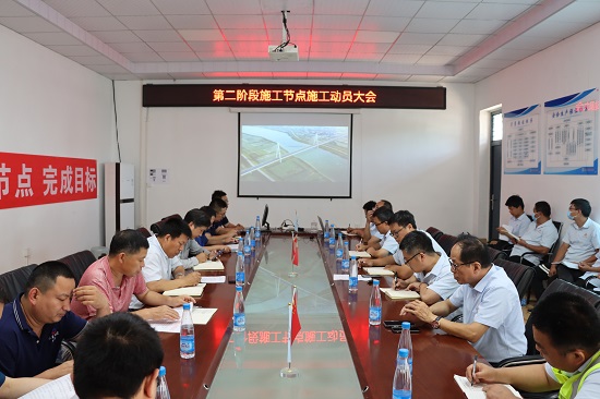 6月11日,东津黄河大桥召开第二阶段墩柱出水施工节点动员会,建设、监理和施工等单位参加会议。