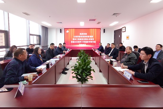10月27日,云南建投第四建设有限公司副总经理骞绍杰一行到山东黄河工程集团就新能源产业项目合作进行洽谈交流。工程集团党委书记、董事长李斌,党委委员、副总经理赵永华、王伟与考察组座谈,集团有关部门、直属单位主要负责人参加座谈。