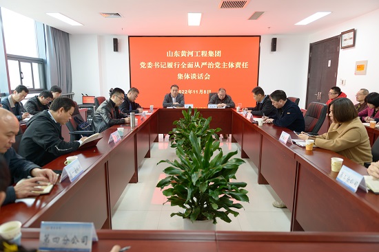 11月8日,山东黄河工程集团召开党委书记落实全面从严治党主体责任集体谈话会,深入学习贯彻习近平总书记关于加强党的全面领导和党的建设重要论述,坚定不移推动集团全面从严治党向纵深发展。集团党委书记、董事长李斌主持会议并讲话。
