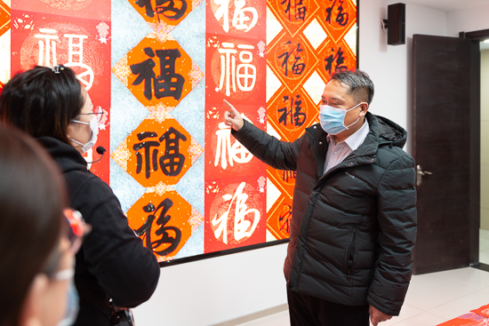 伴随着《新春序曲》,干部职工各显身手,挥毫泼墨,在鲜红的福字斗方纸上,写下一个个充满喜庆、寓意吉祥的“福”字。在这个暖意洋洋的冬日里,一个个“福”字,承载着浓浓的祝福,驱散了冬日的寒冷,带来了一片温暖祥和。活动结束后,大家将“福”字送到其他职工手中,为大家送去节日祝福。