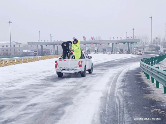 雪花覆盖了幸福黄河大桥的角角落落,给通行车辆带来了不便,幸福黄河大桥第一时间启动应急预案,人员、设施、车辆立即出动,及时进行除雪作业,在桥面、上下坡等路段密集撒盐,进一步加大融雪消冰力度,全力保障来往车辆安全通行。