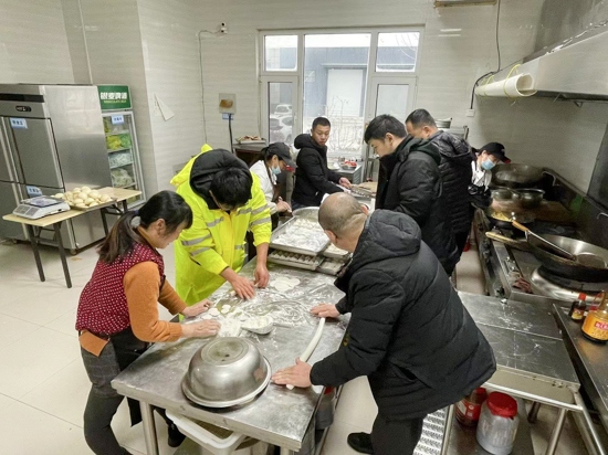 完成工作后,大桥的“厨艺高手们”在食堂里开展了一场充满热情与友情的包饺子活动,大家分别找到自己的拿手项目:搓面球、擀面皮、包饺子。在大家欢快的畅谈声中,手上包出的饺子个个大肚儿圆,彰显着大气与好爽,职工食堂里暖意融融,到处洋溢着“家”的味道、“家”的温馨。