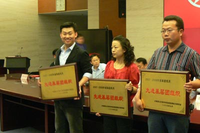 5月4日,在山东河务局召开的纪念“五四”运动90周年暨青年“先优”表彰大会上,山东金河房地产开发有限公司团支部获得“先进基层团组织”称号,公司开发部经理陈明获得“优秀共青团员”称号,这对金河公司下一步开展团员青年工作起到了巨大的鼓舞和推动作用。